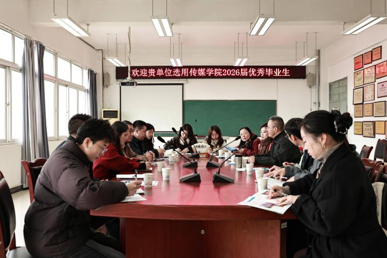 为扎实推进2026届毕业生就业工作,主动对接用人单位需求,传媒学院通过“走出去,请进来”深入开展访企拓岗专项活动。12月4日,传媒学院与绵阳市公共气象服务中心、绵阳科锐人力资源、四川鼎菁教育、四川最康初科技有限公司等企业于弘毅楼401召开校企合作会议,前述企业负责人、学院领导班子成员、学工团队以及优秀毕业生代表参会。