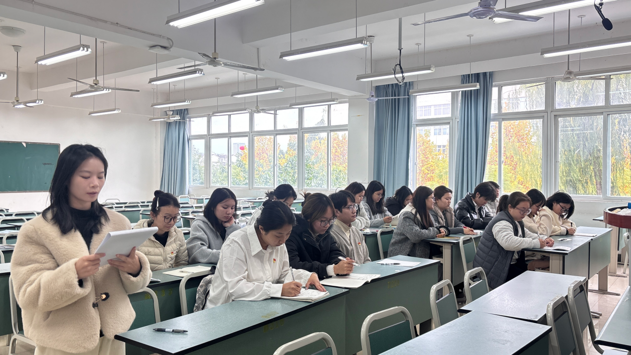 1117日,传媒学院学生第一、第二党支部于博学楼233教室联合开展“四中全会绘新篇,家国情怀续荣光”十一月主题党日活动。学生一支部书记陈果、二支部书记姚冬梅参加并作指导,全体学生党员参